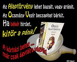Az Alaptörvény lehet bazalt, vagy gránit. Az Ocsmány Vezír becsaphat bárkit. Ha békét hirdet, kitör a pánik! . A kórházi beteg már csak ágytálra vágyik! (TDT) |