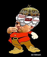 Van annak egy diszkrét bája, hogy milliárdos már a vezír familiája! Oszt, onnan fentrõl néz le a NÉPRE, a nemzethy CSALád Okoska Vitéze. . És az egész világnak odapörköl õ! Míg hûséges barátja az agyhalott lölõ, és strómanok tömege telepszik a NÉPRE, mert Országos Vezírük plakátján a BÉKE! . Miközben fegyvergyárak nõnek gomba módra! A magyar földet így használja pávatánc (jo)"jóra"! S, a békeHARCHOZ ide-oda int is, mert Ocsmány Világban a HARC a legjobb biznisz! (TDT) |